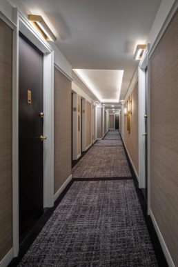 Noise is an issue in hallway interior design in NYC, as well. Narrow corridors, especially those without windows, can cause all sounds, including footsteps, to resonate into individual units. Carpet is the solution that works to cut down on noise, and today we have a myriad of carpet choices for our clients that are beautiful, stain-resistant, easy to maintain and long-wearing, too.