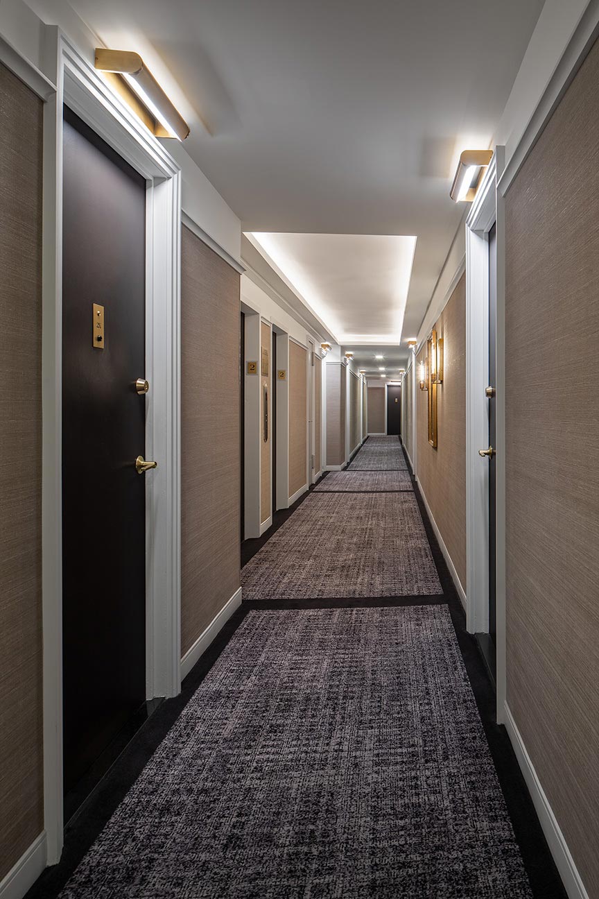 When choosing a hallway interior designer in NYC it’s important that the firm have many years of expertise in high-end condos and coop buildings’ public spaces. We are often brought in to re-do hallway upgrades that had been performed by well-meaning, but inexperienced interior designers and/or contractors who lack the kind deep knowledge necessary to make the proper selections and recommendations, such as::