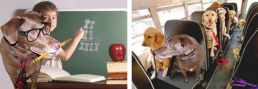 September features Hershey on her way “back to school” on the bus or busy teaching “biscuit math” in the classroom.