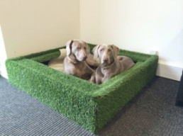 Of course, our dog-loving clients always get pee-pee resistant and nail-proof fabrics and rugs and easy to maintain floors. But these deep in dog culture condo owners wanted a place in the lobby where purse-dogs could “do their business” during inclement weather or late at night.