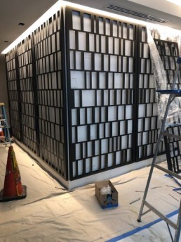 Here, we created an iron construction for a backdrop behind the doorman desk and seating area where people linger, so everyone can enjoy it.