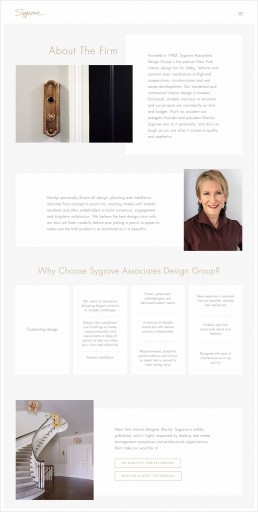 Sygrove Associates Design Group is an NYC interior design company. Our company’s founder Marilyn Sygrove is the lead interior designer on all projects. And she’s as tough as you are when it comes to quality, aesthetics, and coming in on time and on budget.