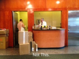 You may not realize how many times a day your doorman must leave his desk – often to retrieve packages. It’s hard on him and not safe because your lobby is unattended when he steps away. The doorman desk should be easily accessible to all the areas he’s responsible for.