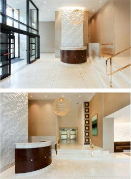 Those are just a few examples where thoughtful concierge desk design enables New York City apartment dwellers to enjoy the benefits of an elegant and well functioning lobby. You can view more photographs of our lobby interior design projects here.